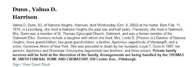 As with everything, there was also a sad part of the story. We had a feeling my grandmother was dead because she would have been in her 80s in the early 1990s and we knew she had health ailments, so it was reasonable to think she had died. This was sad because my mother was actually the executor of her will and had given her contact information, which was added to my grandmother's medical chart the last time we saw her, to the nurses. However, no one ever contacted us about her death. Nothing. When I found out when my grandmother, and namesake, was born, I also found out she had died. Talk about taking your breath away.